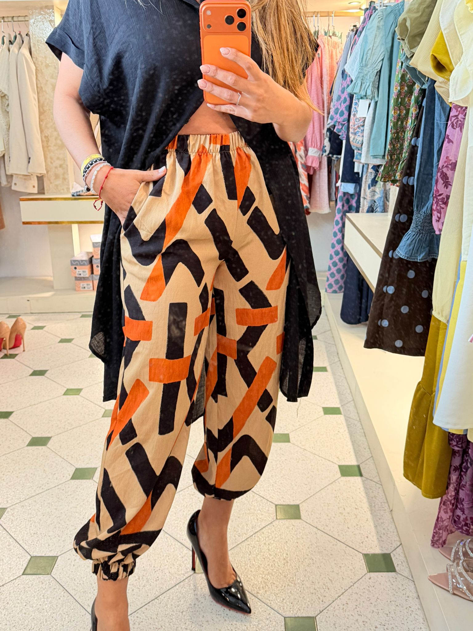 Bombacho étnico con detalle de goma baja y en cintura. Alta calidad