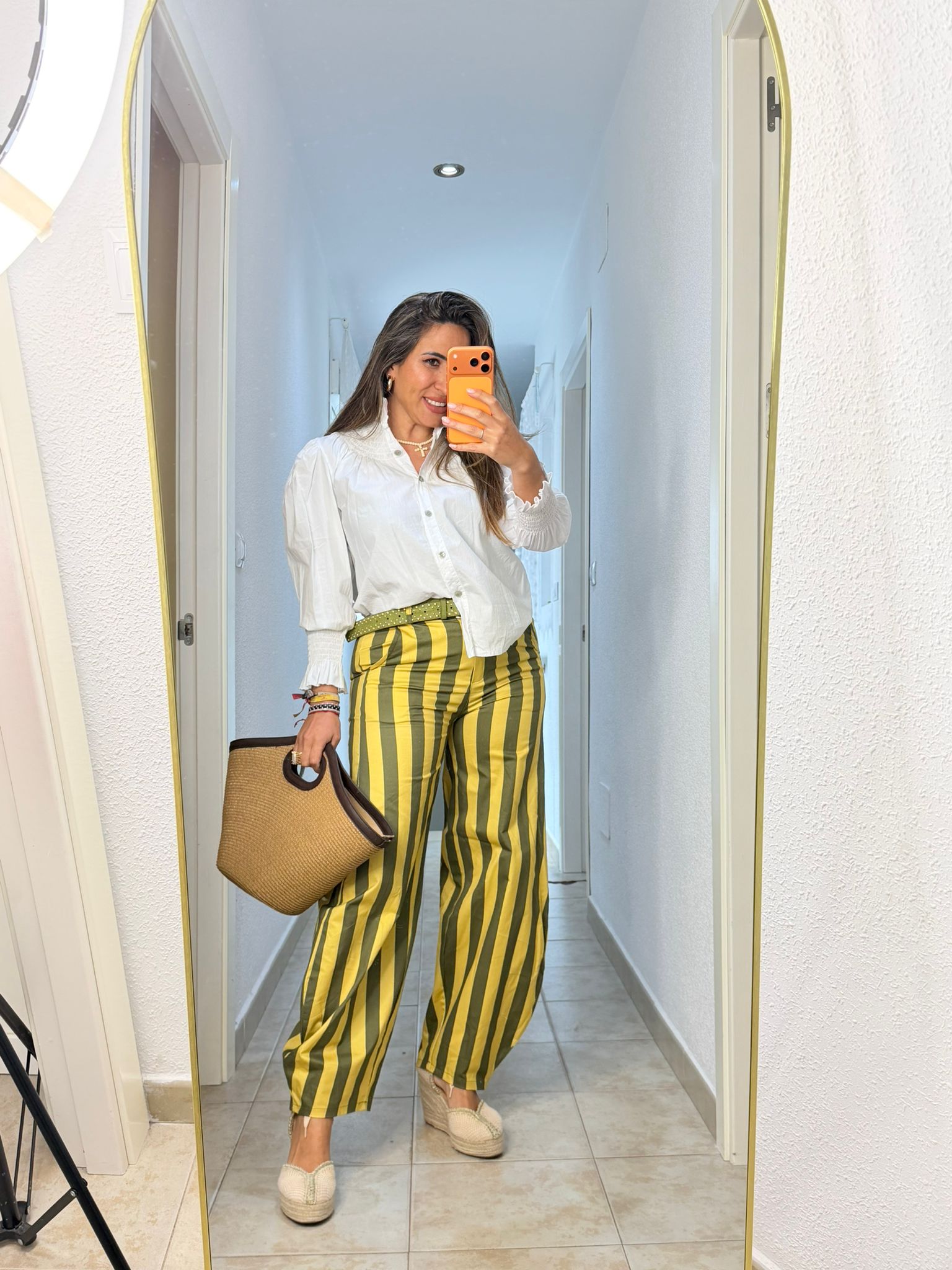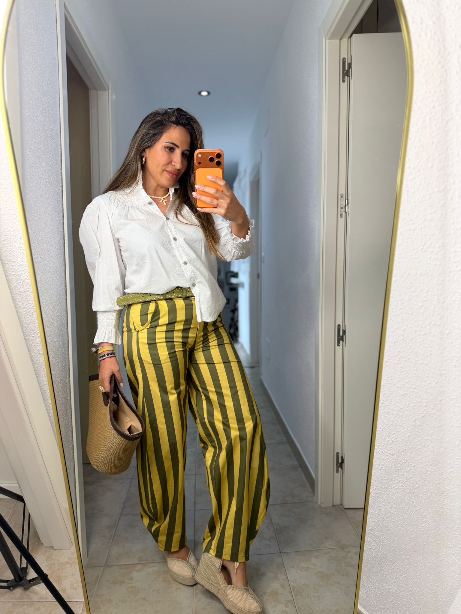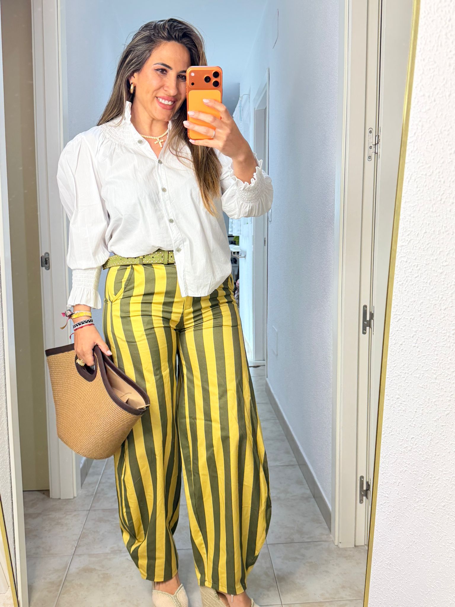 Bombacho listas en talla única (tallan de la S a la L). Color vainilla y verde.