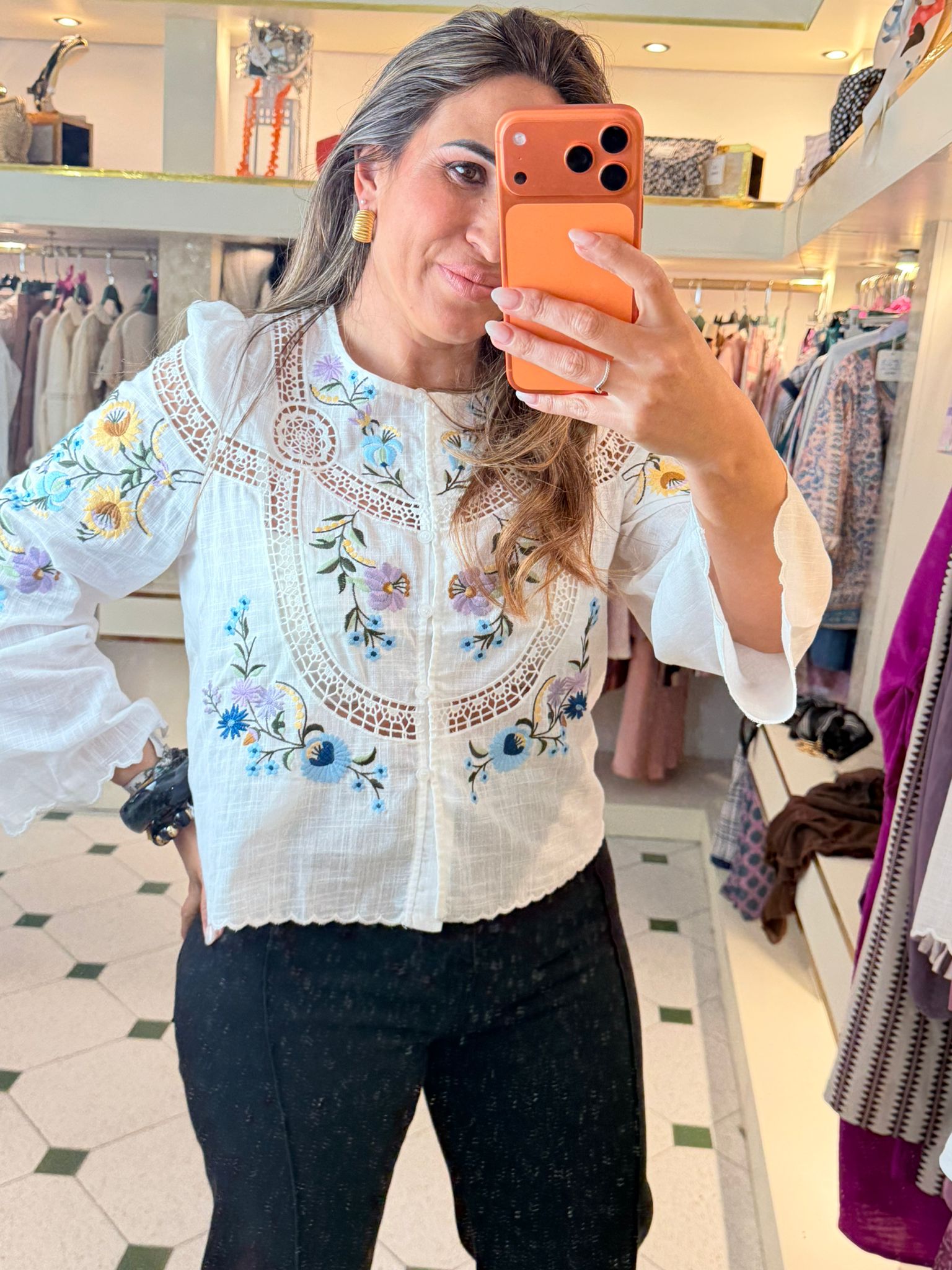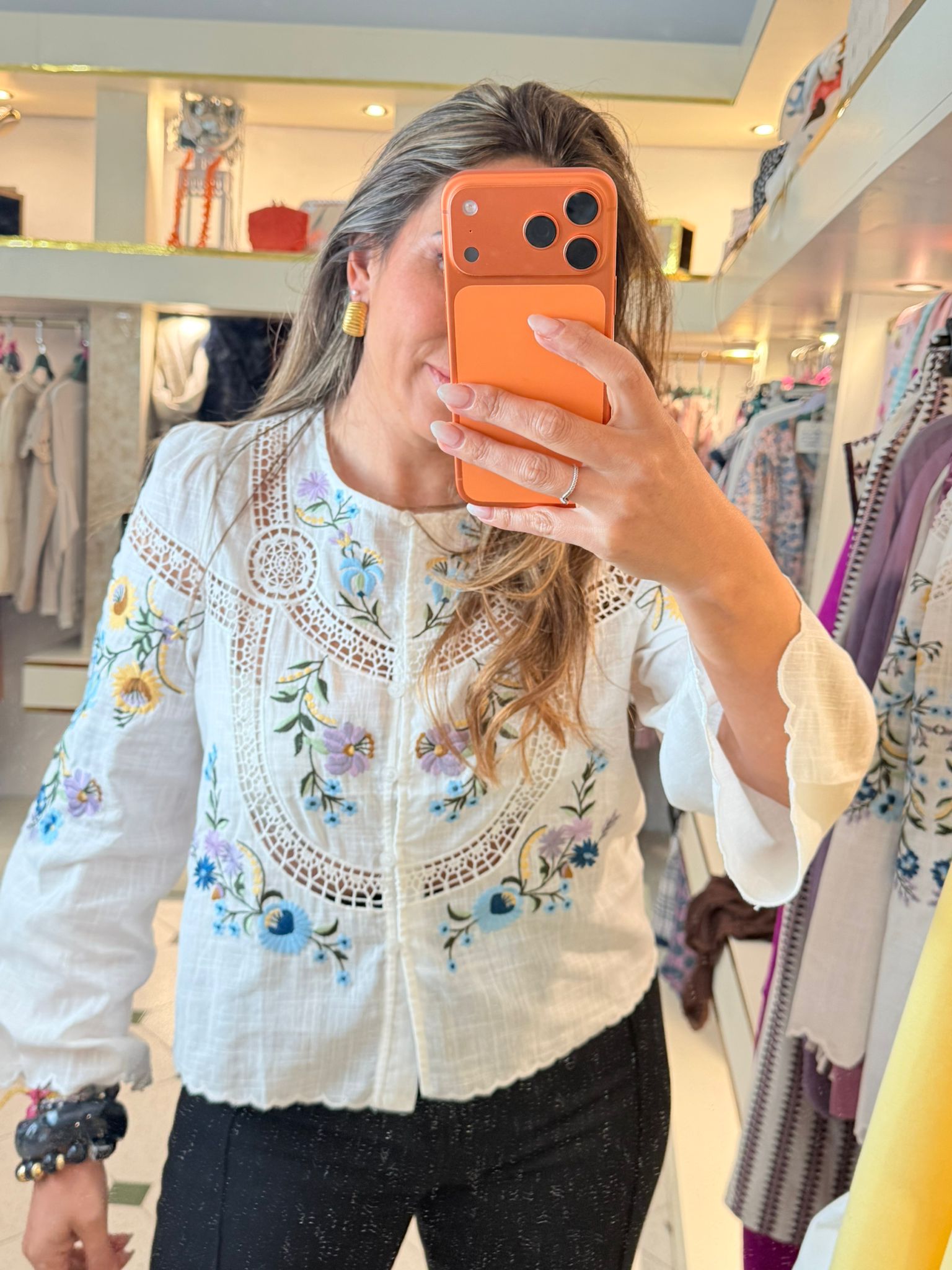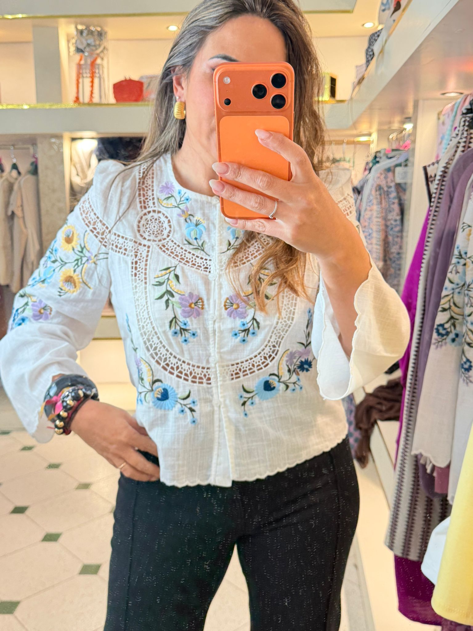 Camisa bordada colores de alta calidad.