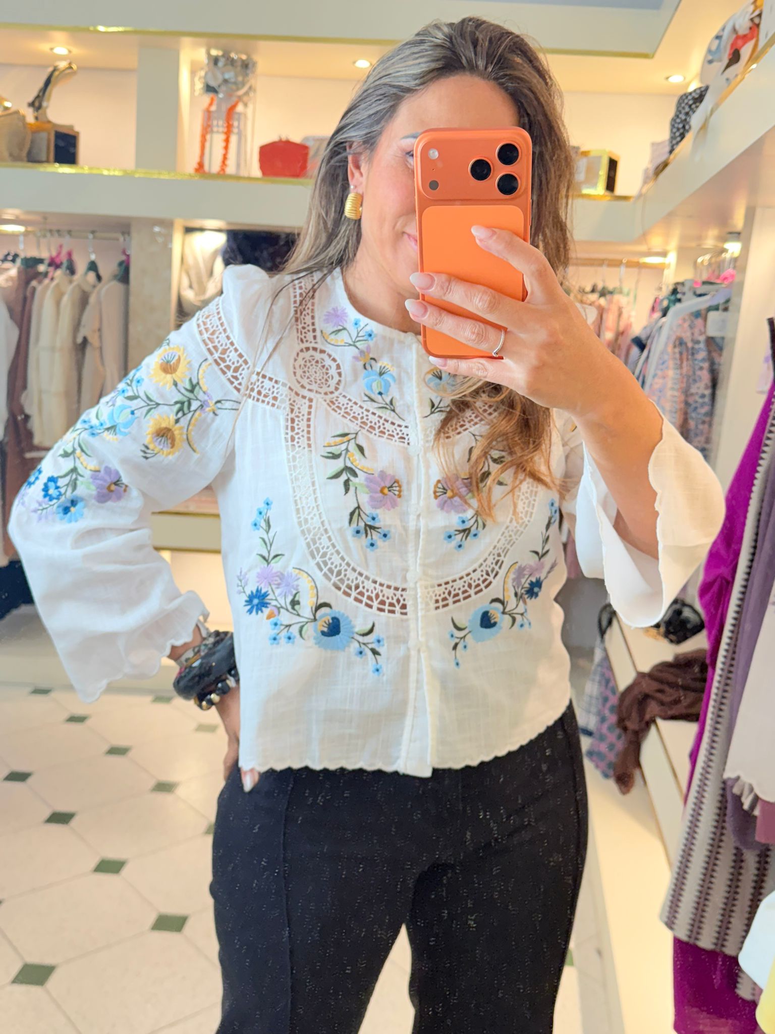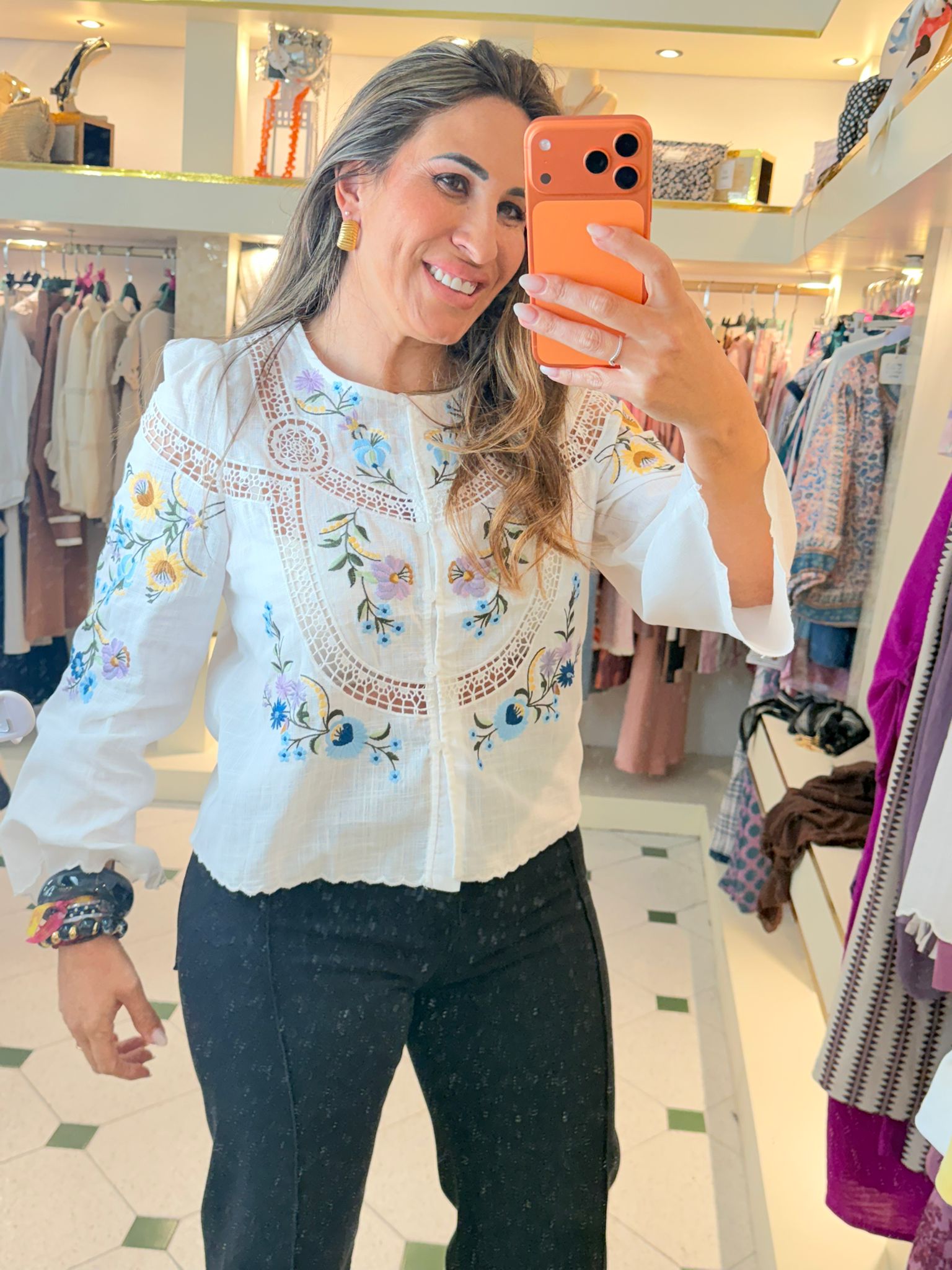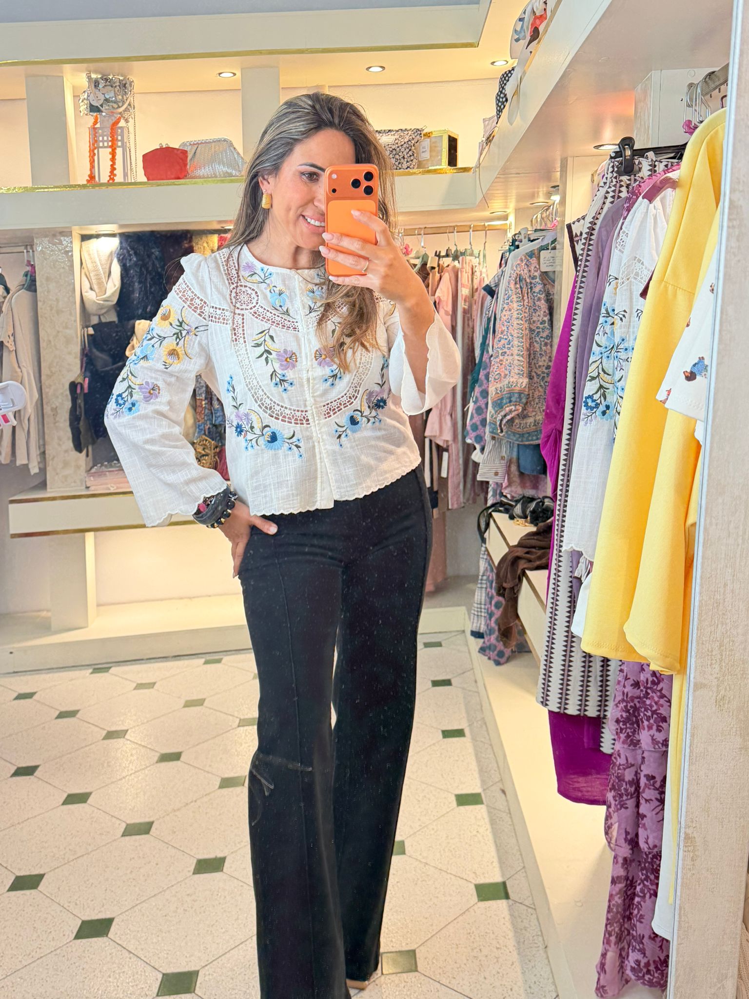 Camisa bordada colores de alta calidad.