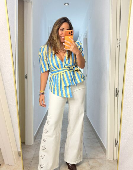 Camisa perforada globo en talla única (talla de la S a la XL).