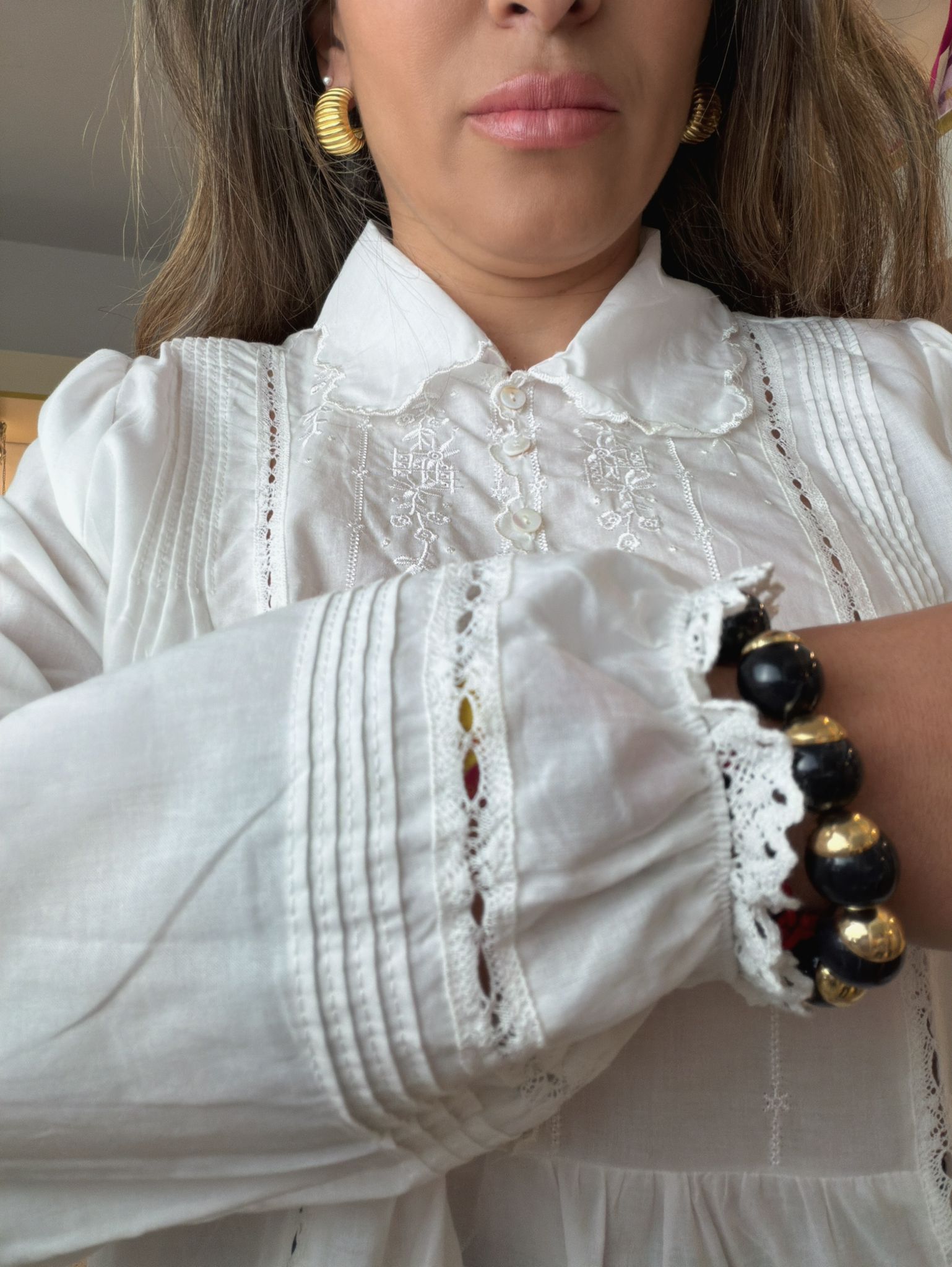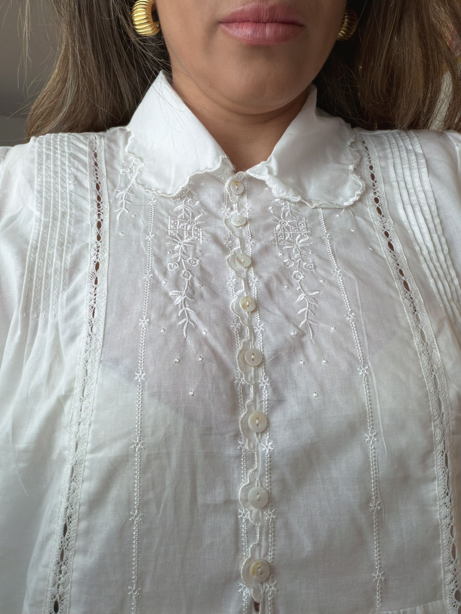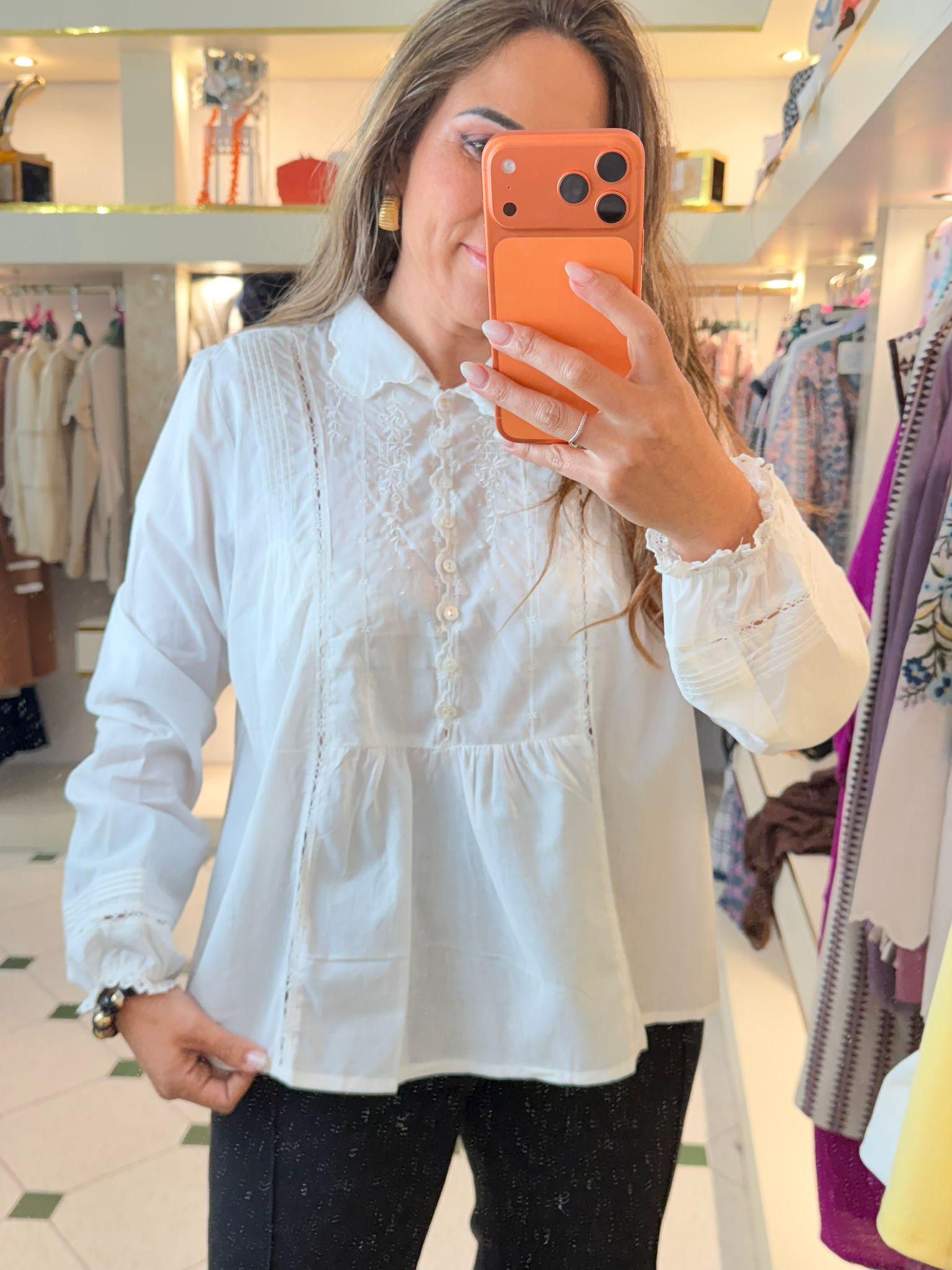 Camisa pilar con detalle de cuellos y bordados. Alta calidad.