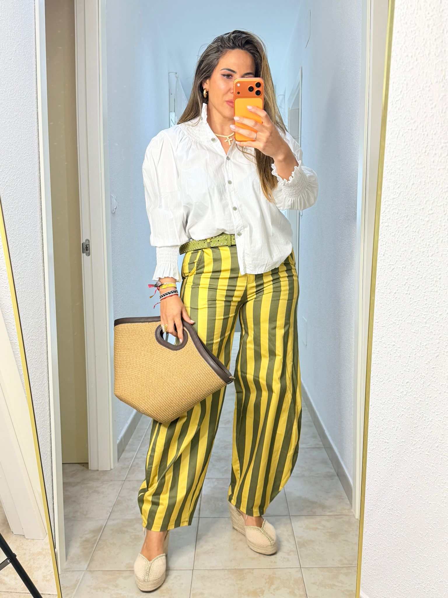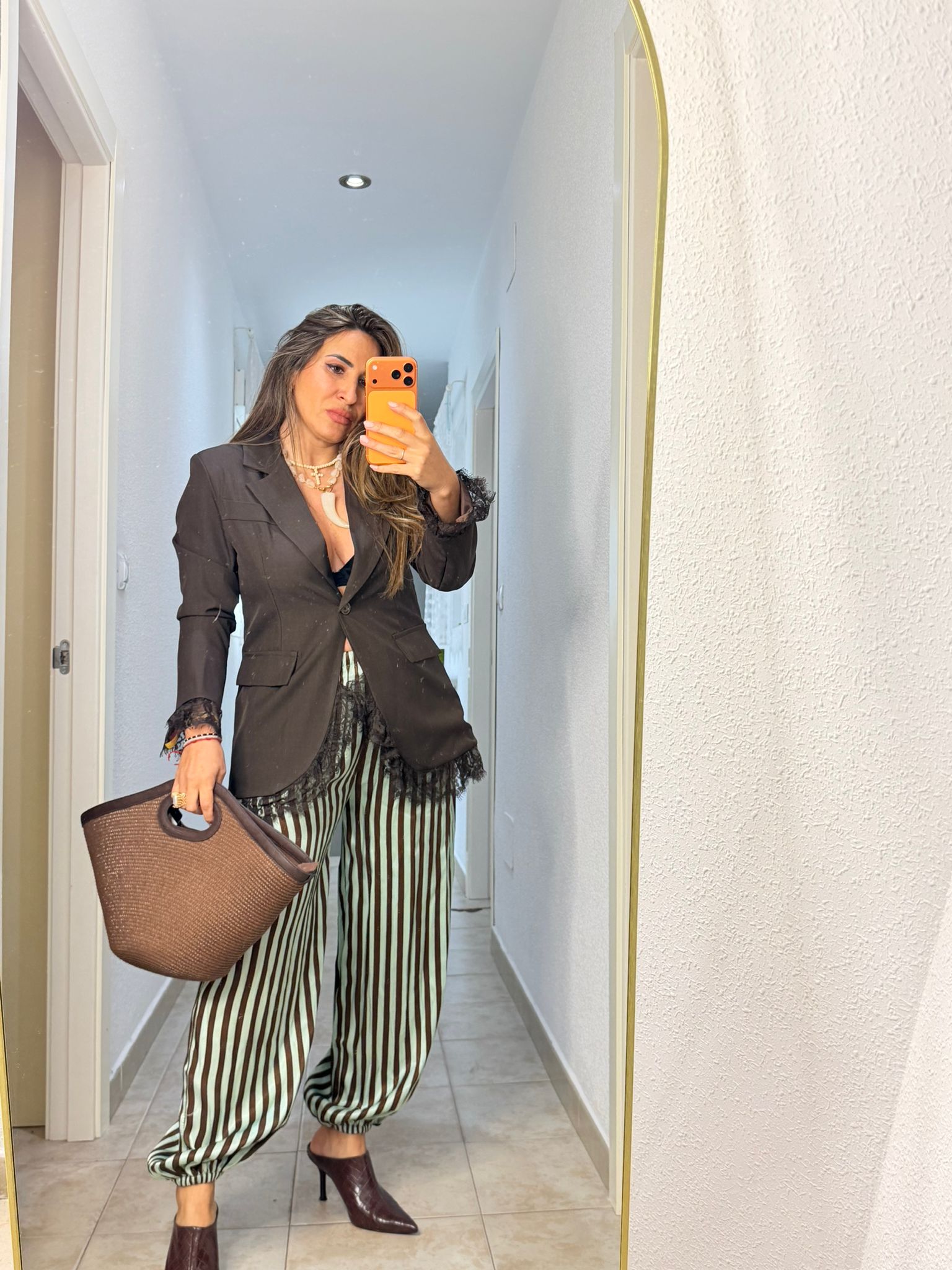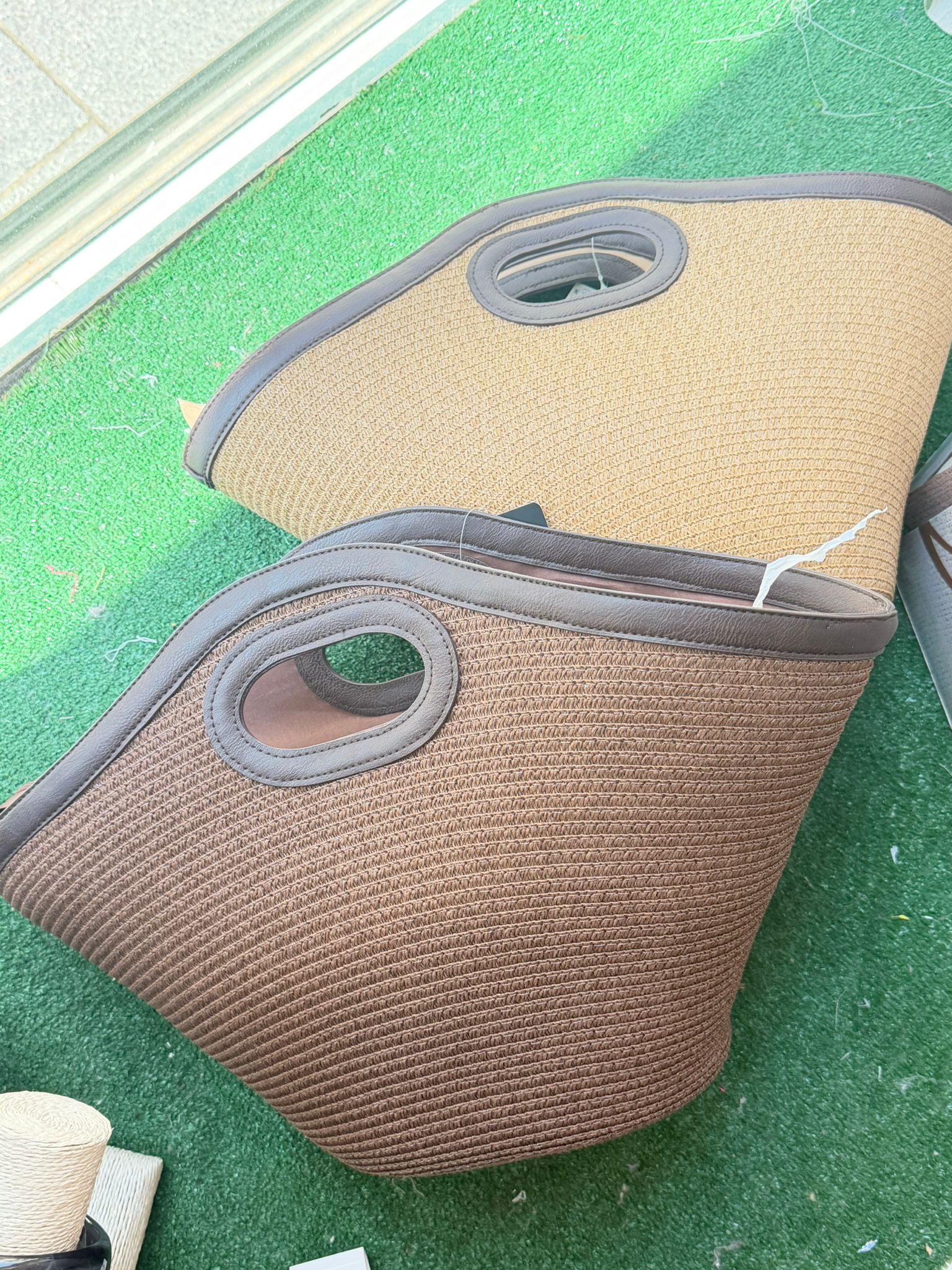 Cesta de mimbre con detalle de piel: 54 cm de ancho y 24cm largo.