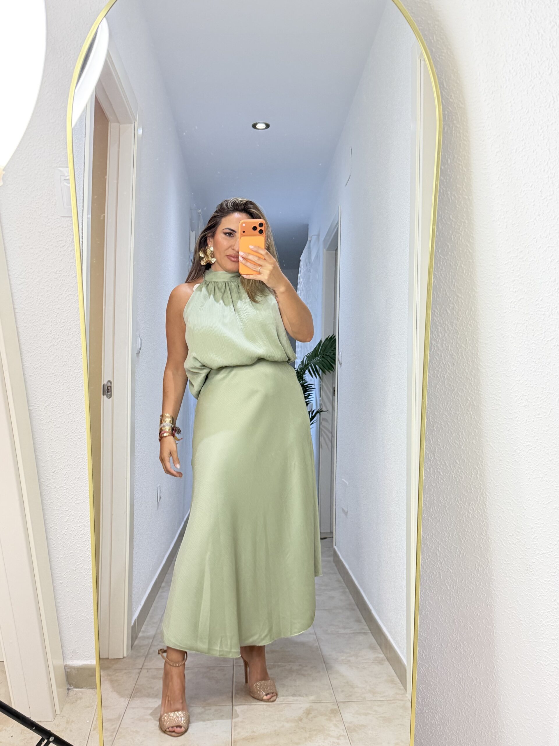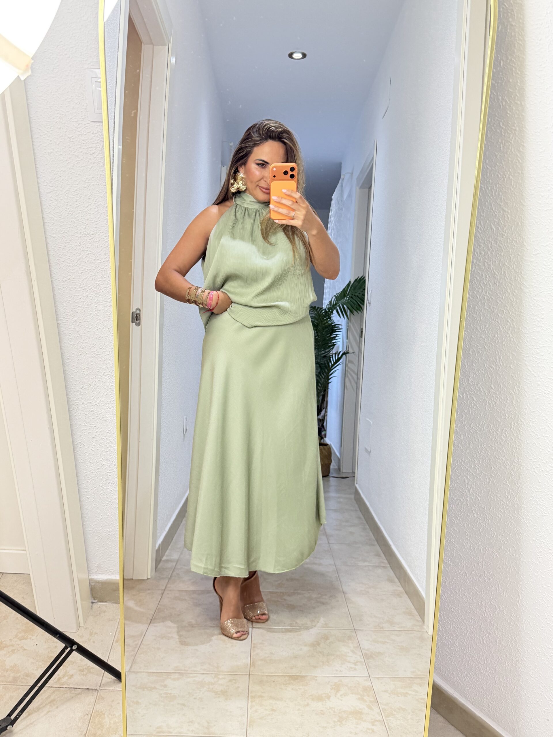 Conjunto de dos piezas falda y top con lazada caída. Talla única para s m l xl.