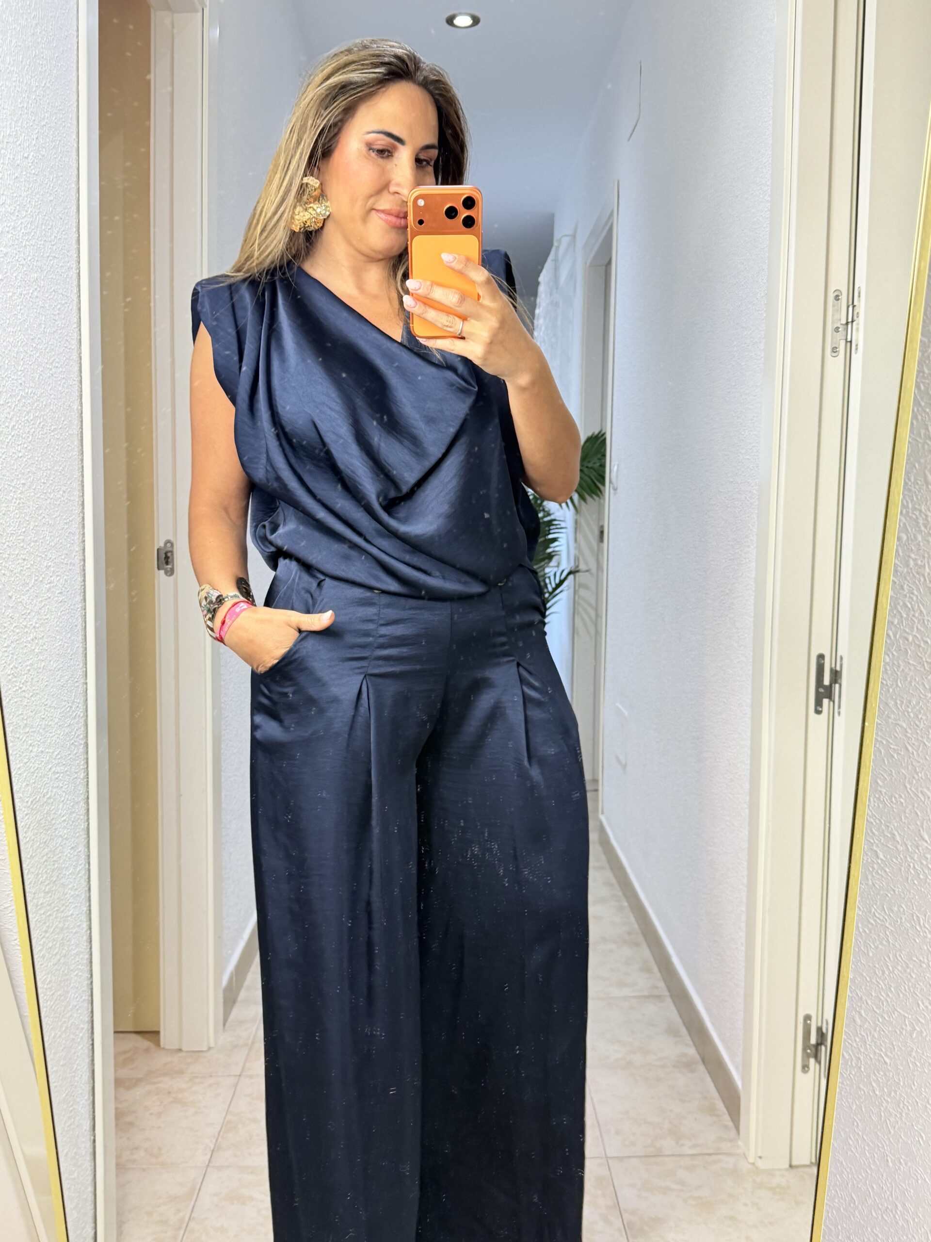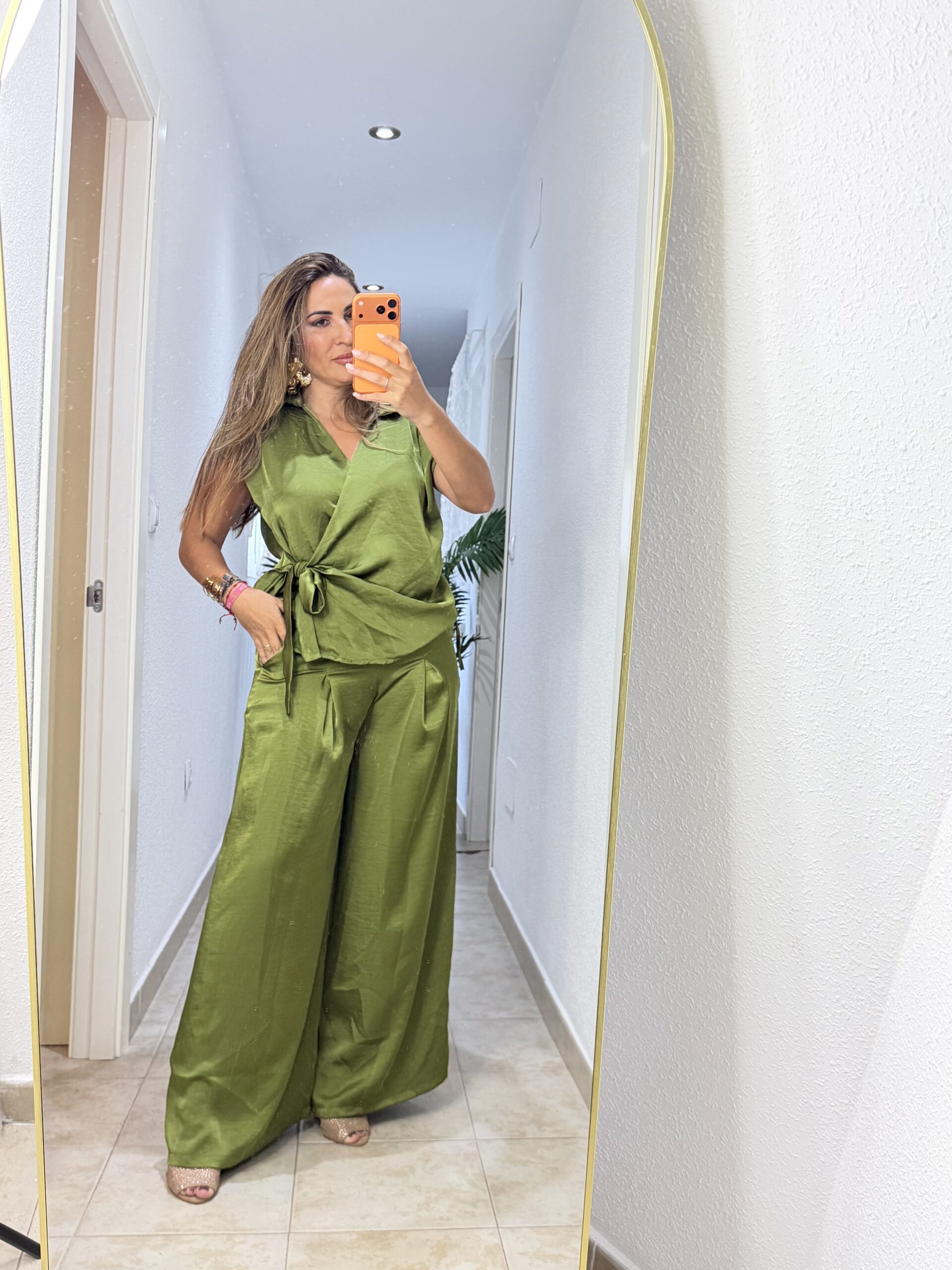Compra ahoraConjunto de dos piezas con detalle de camisa abullonada y pantalón palazzo alta calidad. Talla única para s m l xl.