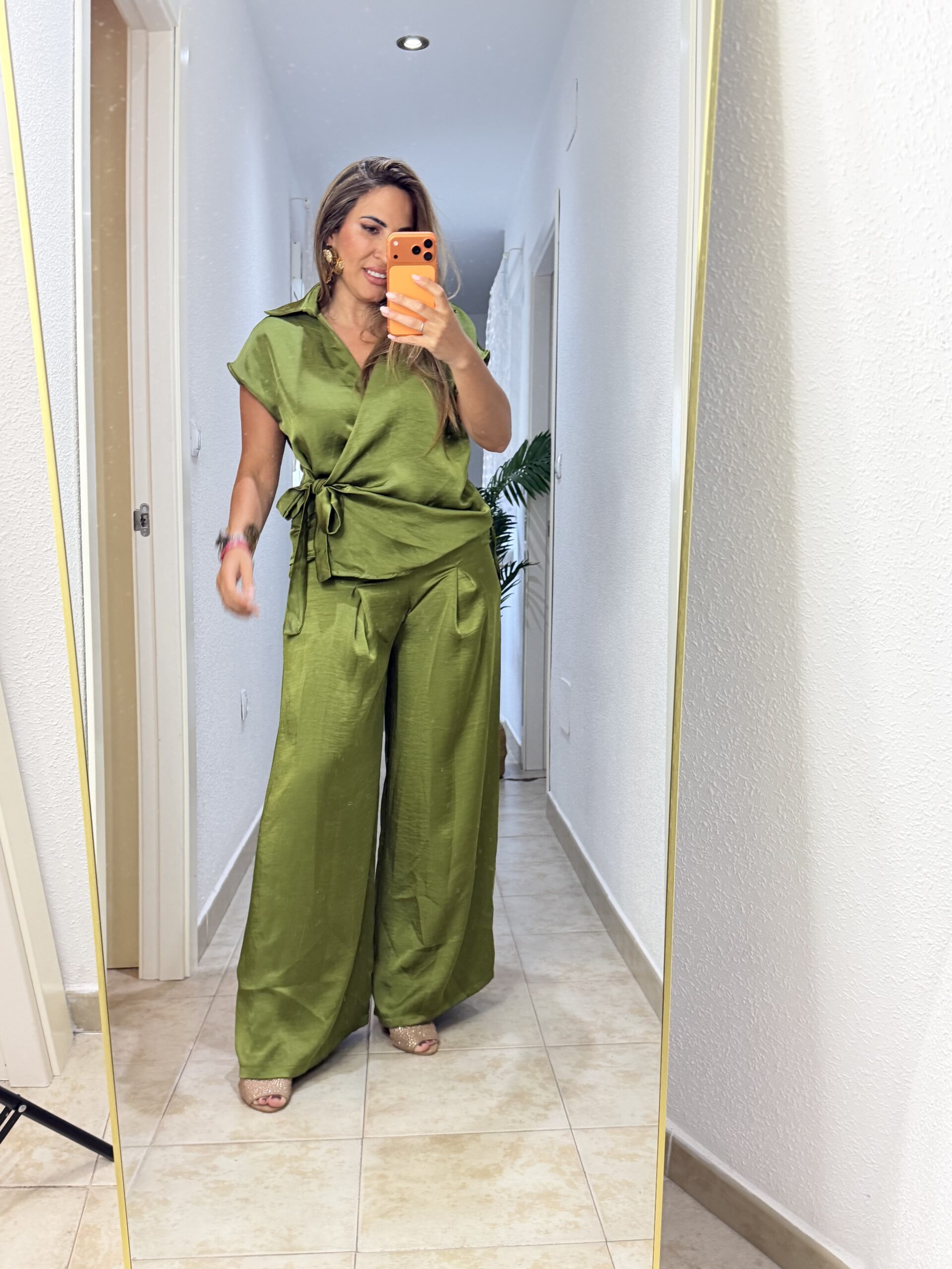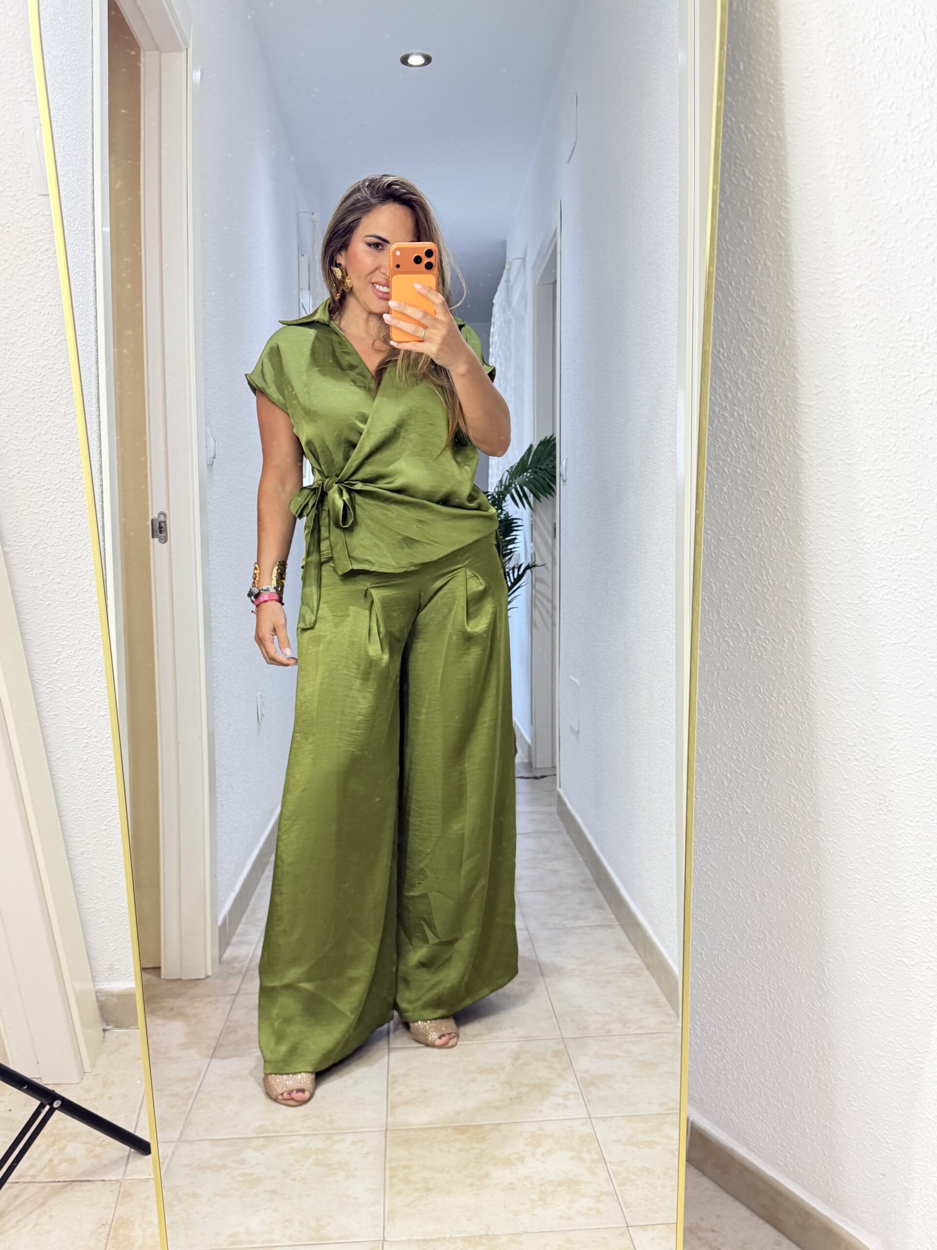 Conjunto de dos piezas con detalle de camisa abullonada y pantalón palazzo alta calidad. Talla única para s m l xl.