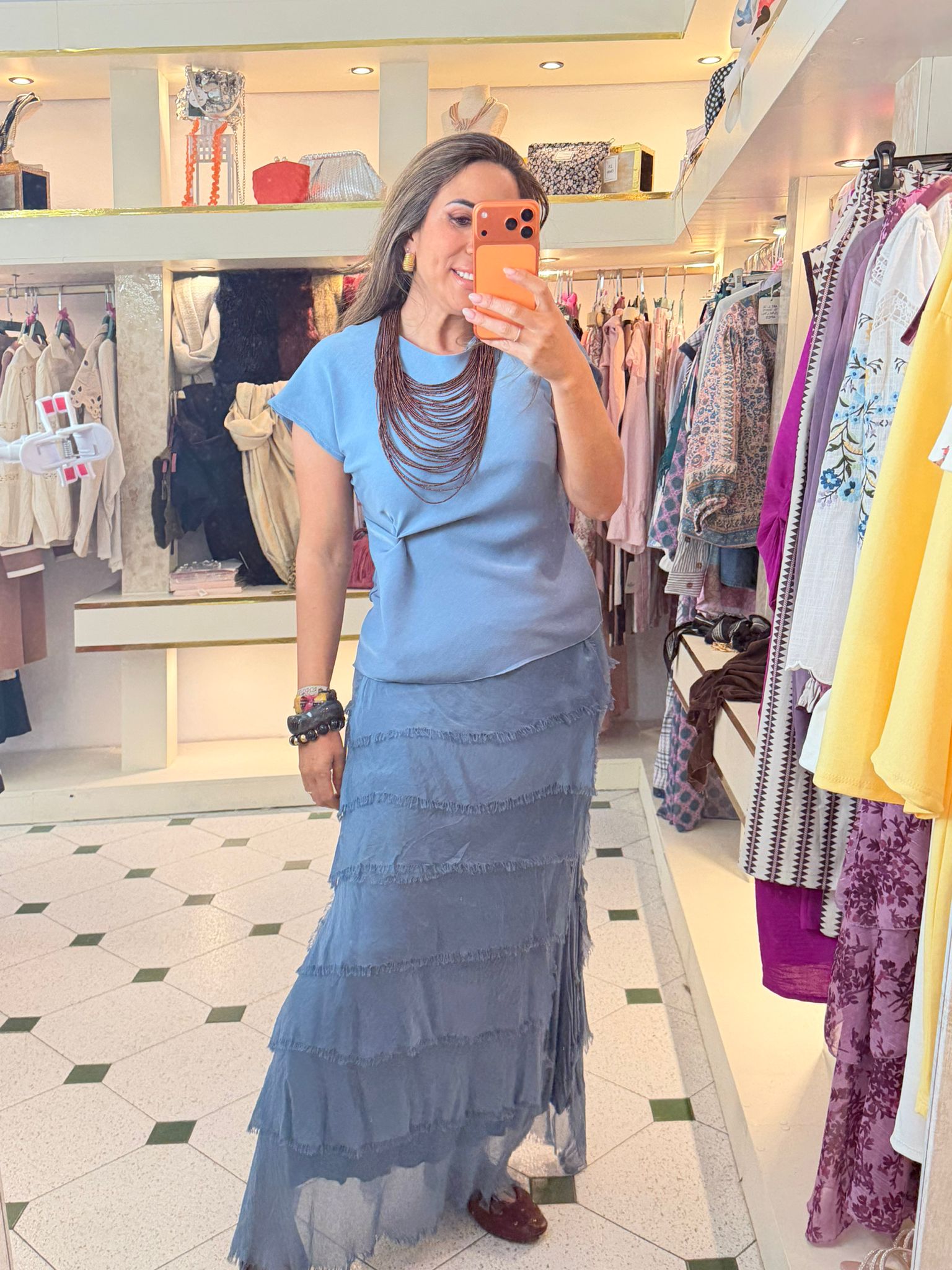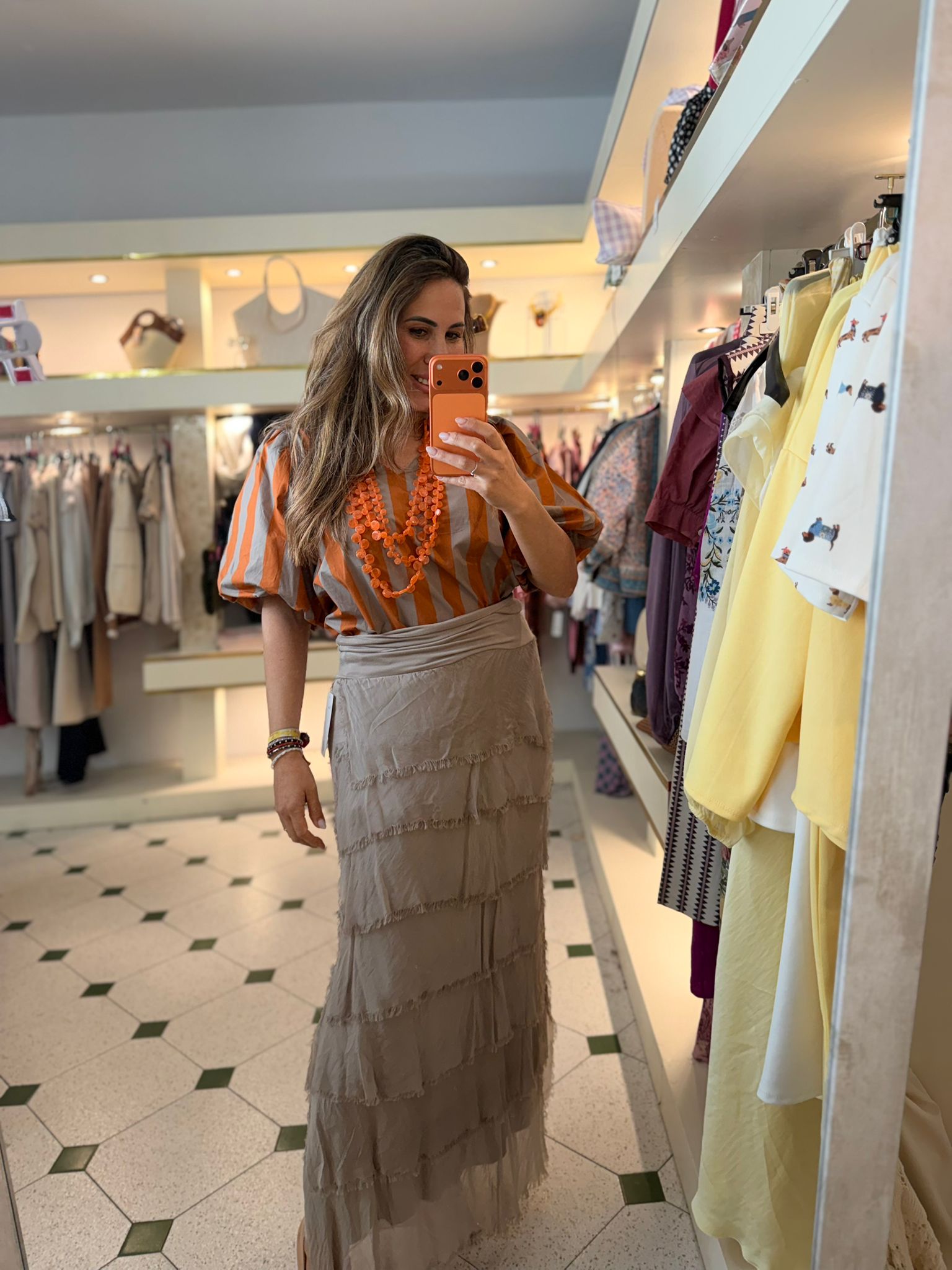 Compra ahoraFalda Villanueva de gasa volantes, de alta calidad.