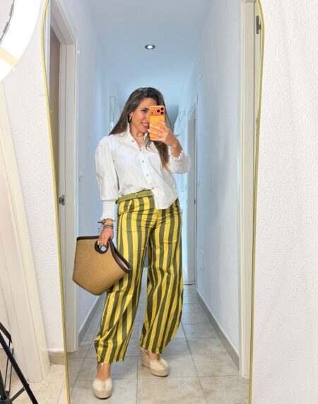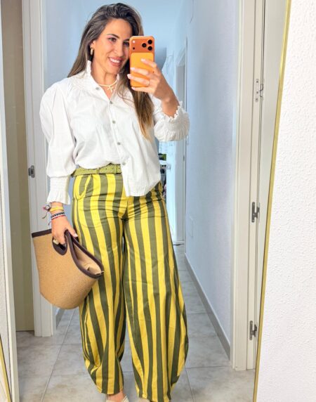 Jersey de punto de color naranja y marino, de media manga. En talla única (tallan de la S a la XL).