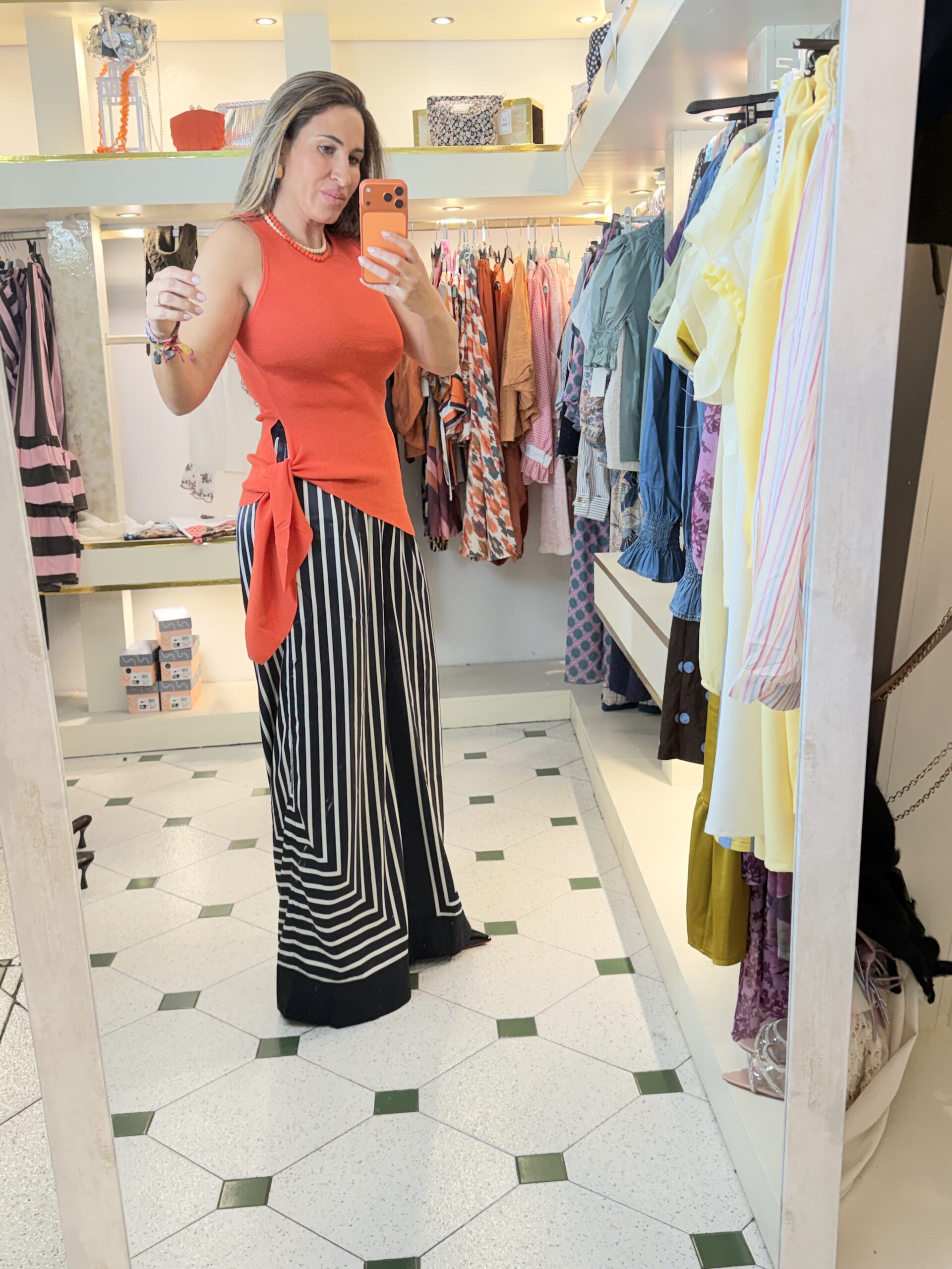 Compra ahoraPantalón ideal con una calidad impresionante, el fondo es negro y la lista en cruda más bien blanca.