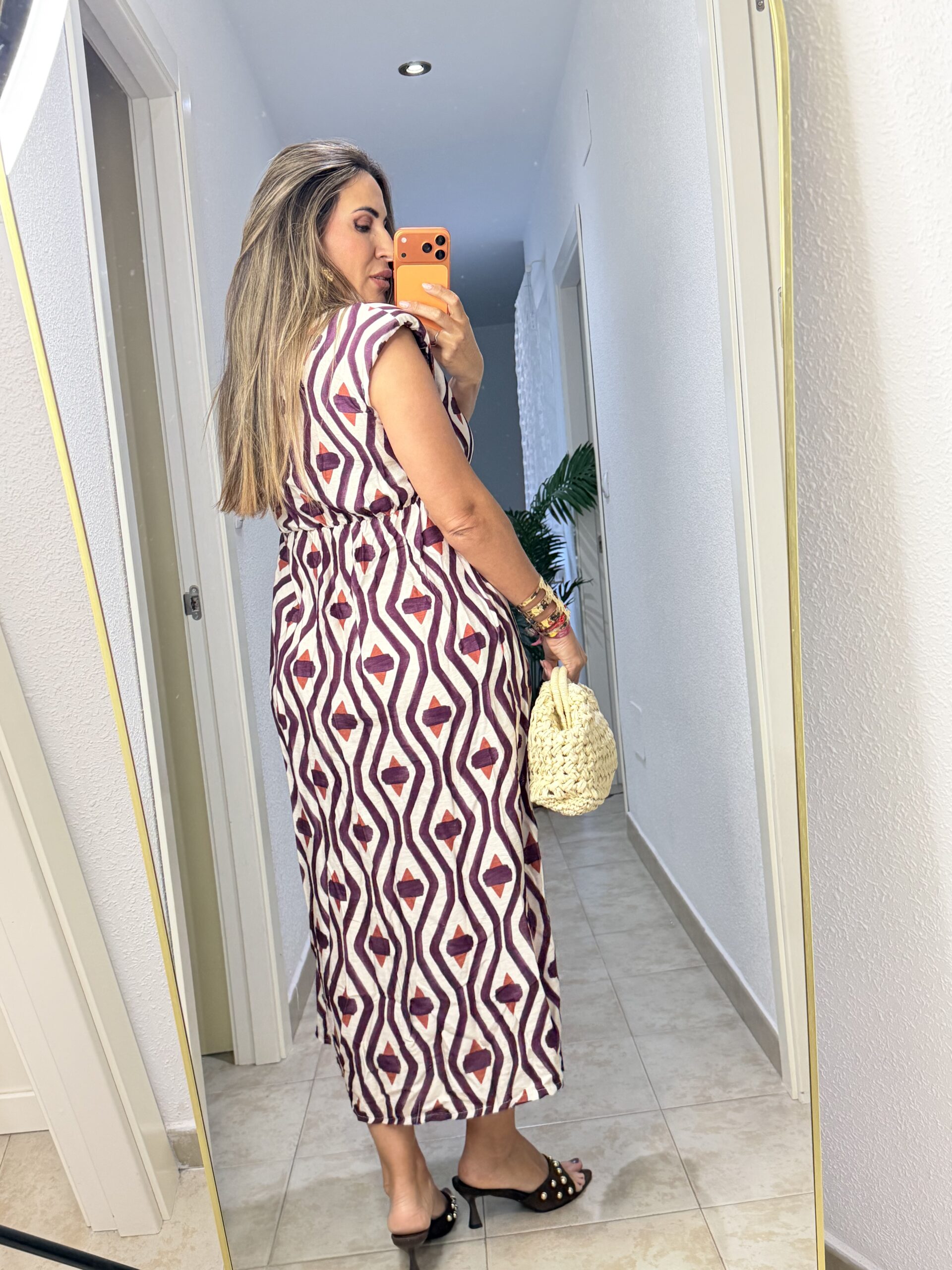 Compra ahoraVestido tipo lino con detalle de corte debajo del pecho. Talla única (tallan de la S a la XL), contorno de pecho 99 cm.