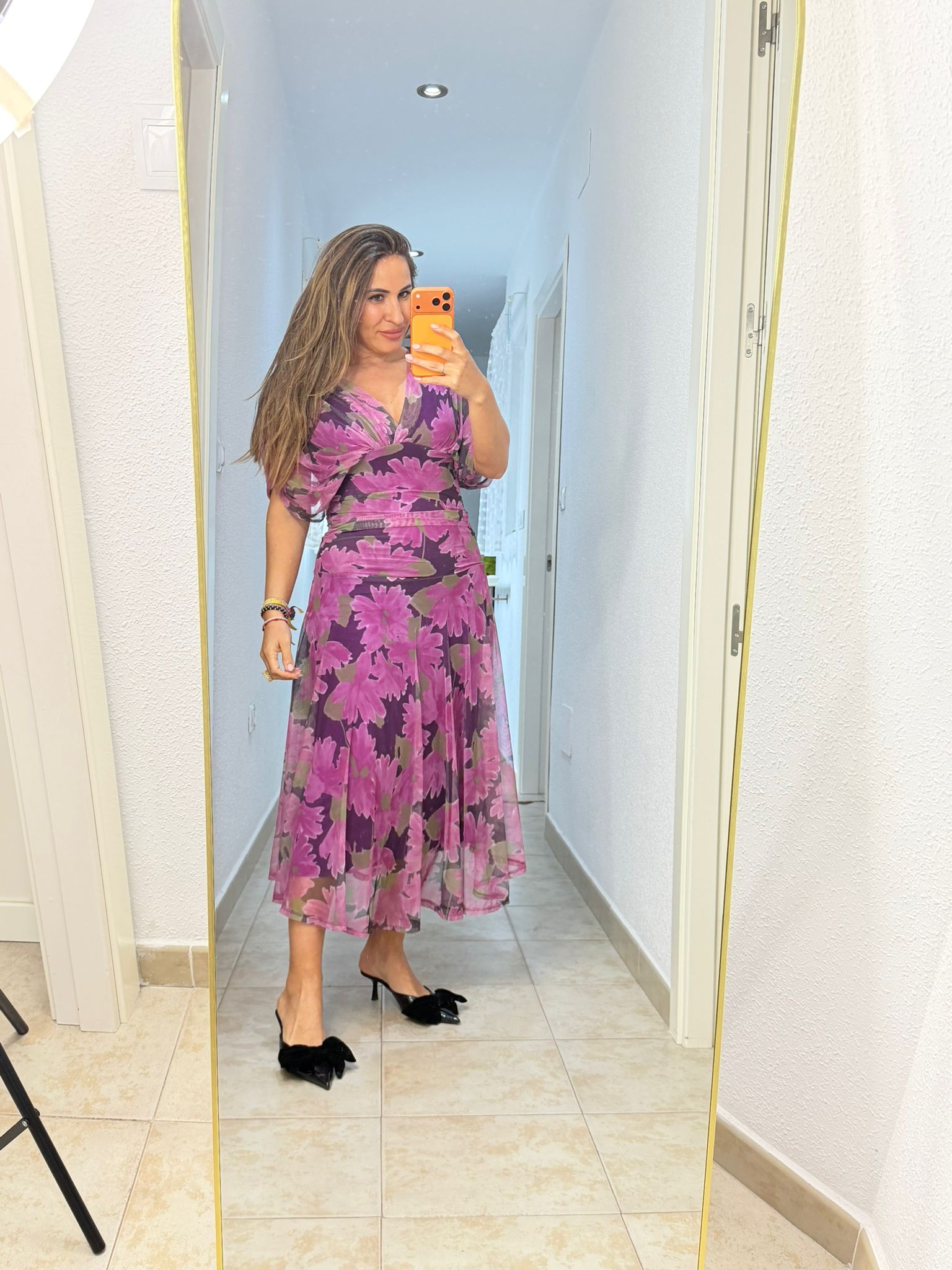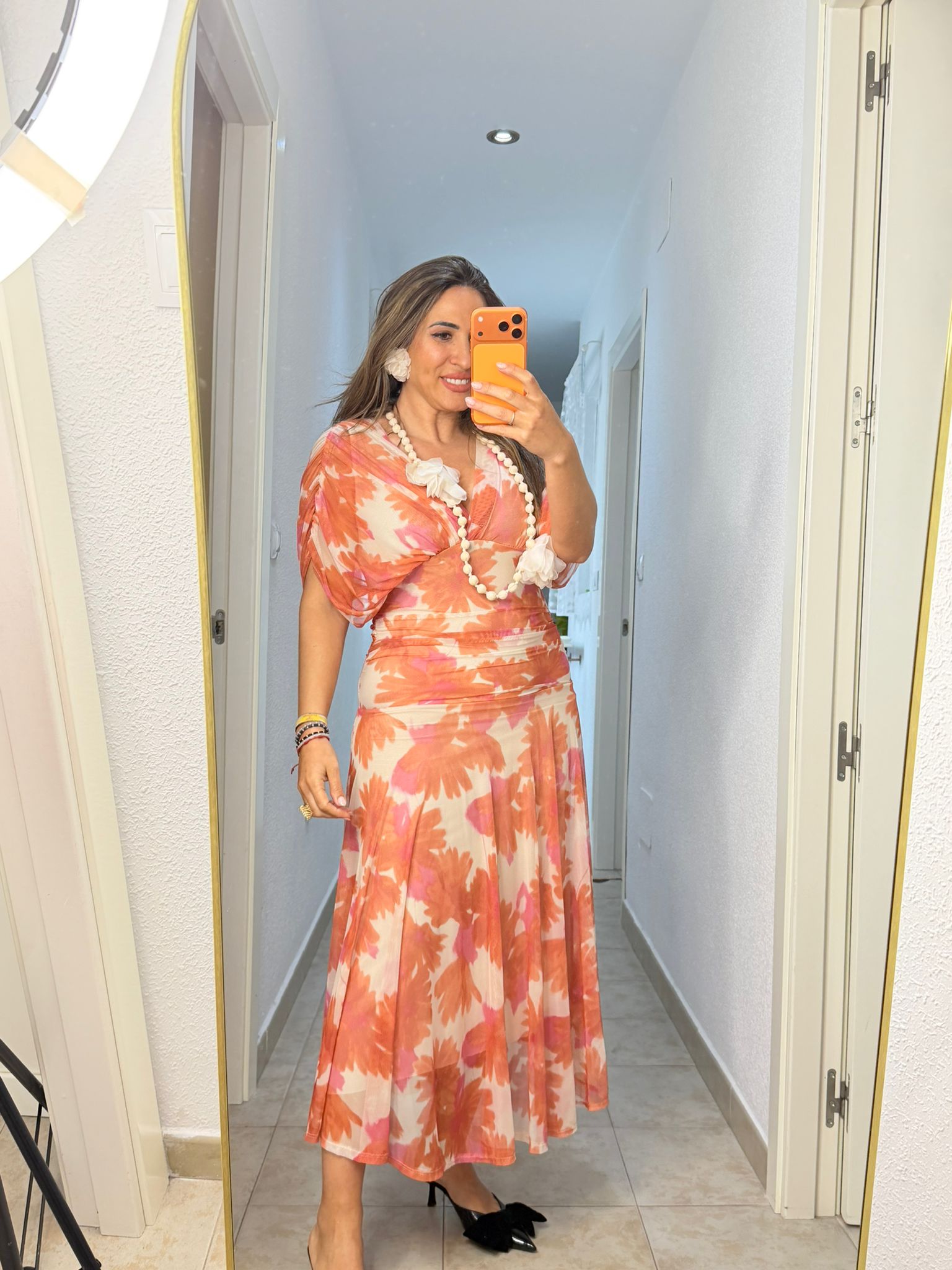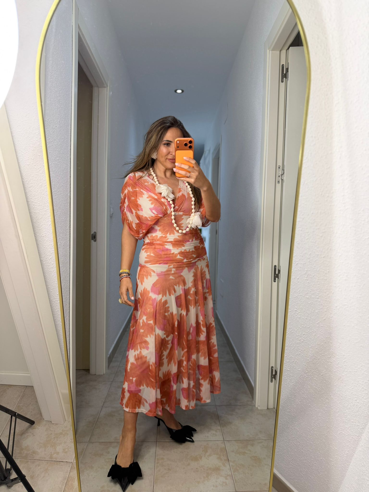 Vestido Marisol con detalle de escote y frunce tipo fajín en el centro cuerpo. Talla única (tallan de la S a la XL).