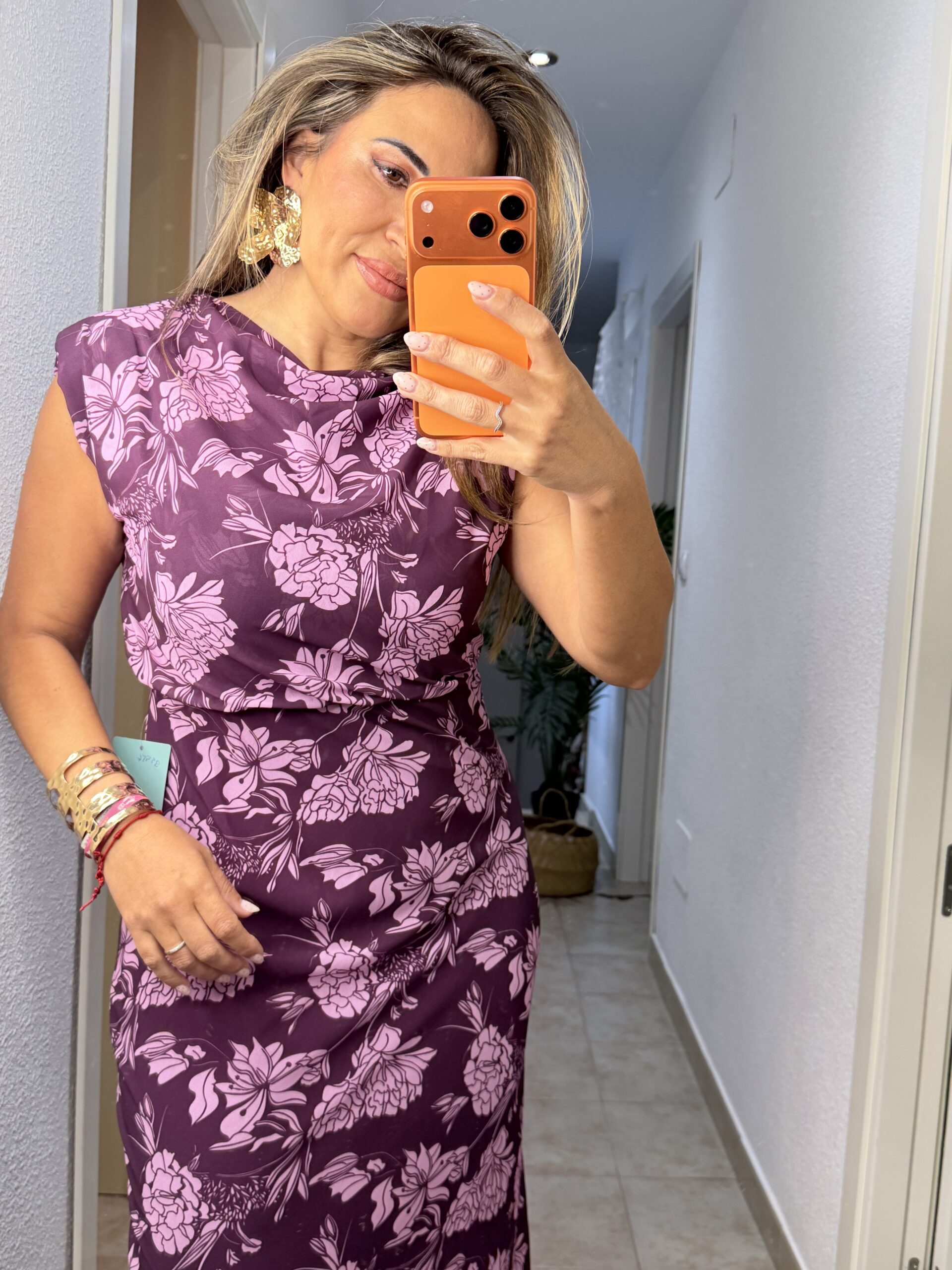 Vestido tulipa con detalle de corte debajo del pecho alta calidad y bajo de gasa caído. Talla única para s m l. Medidas: contorno pecho 97 cm y cintura 100 cm.