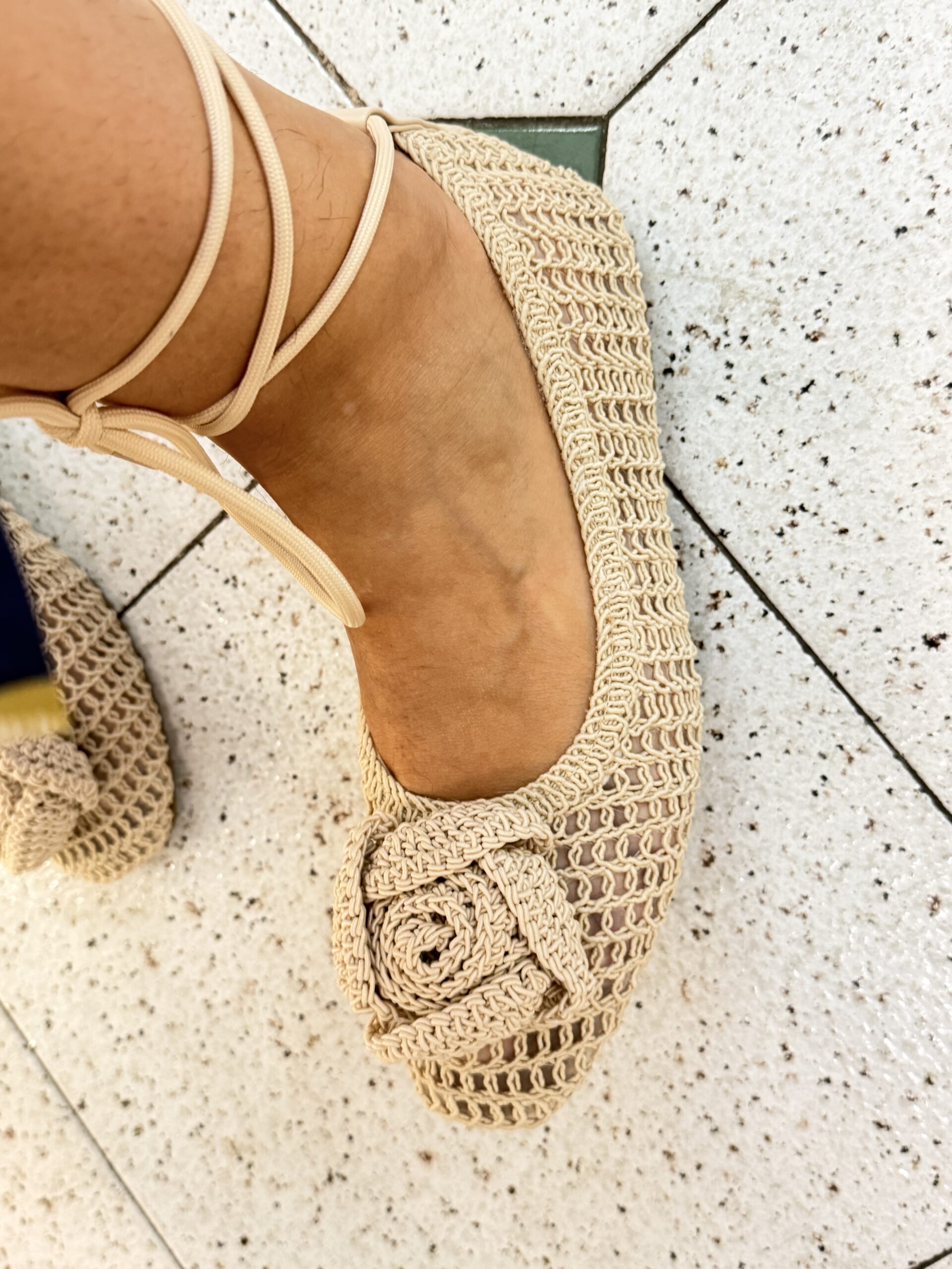 Estos zapatos de crochet son los más cómodos y originales del entretiempo, anudados al tobillo o posibilidad de ponerlos sin lazada. Tallan normales.